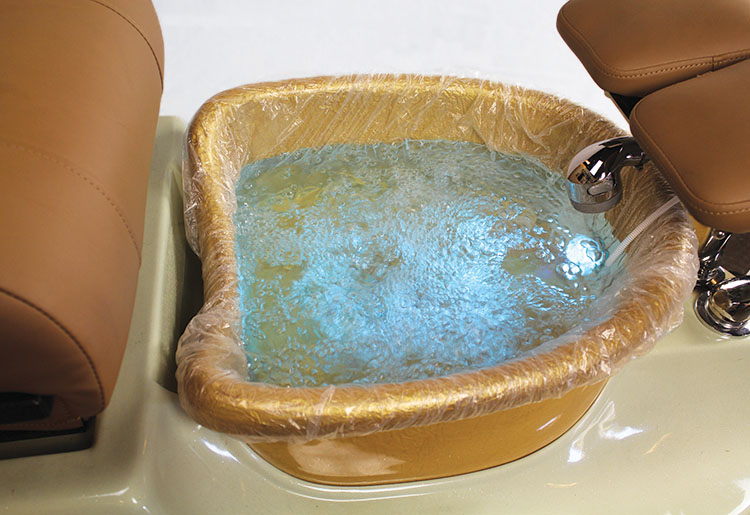Contégo pedicure spa chairs stand alone as the ONLY spa chairs that have a completely disposable foot spa system called Disposable Pedicure Jet™. The Disposable Pedicure Jet™ protects each and every client from cross-contamination. Pedicure jet tubes are embedded into the liner to provide the foot massage. After the service is complete, both the liner and the jet are disposed of, and every NEW service begins with a NEW Disposable Pedicure Jet™. Pedicure clients no longer have to give up the luxurious water massage they receive from the traditional foot spa jets in lieu of safety and hygiene. Contégo pedicure spa chairs provide the best of both worlds!
